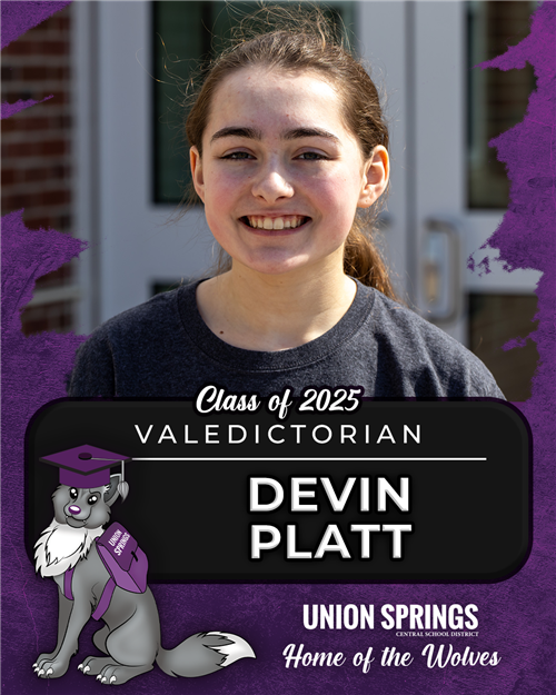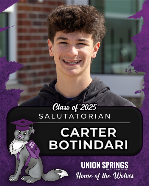 Union Springs High School is proud to recognize two outstanding students for their academic excellence and leadership. Devin Platt has been named the Class of 2025 Valedictorian, and Carter Botindari has been named Salutatorian. Both students have demonstrated a commitment to hard work, perseverance, and involvement in their school community.